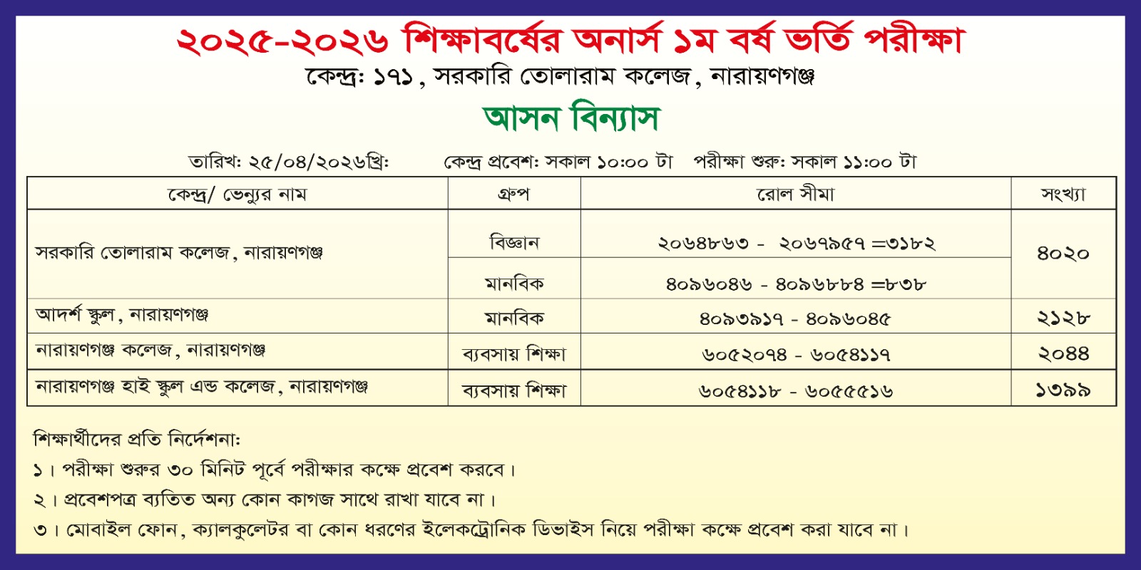 ২. যথাসময়ে কলেজের অভ্যন্তরীণ পরীক্ষা গ্রহণ ও রেজাল্টকার্ড এর মাধ্যমে ফলাফল প্রদান।